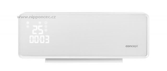 (1000 W/2000 W), funkci ventilátoru a nastavitelnou oscilaci lamel pro efektivní distribuci tepla. Aktivujete-li funkci otevřeného okna, přístroj se automaticky vypne v okamžiku náhlého snížení teploty, čímž šetří spotřebu energie. Velmi praktická je i funkce týdenního 24hodinového časovače, který vám umožní si na každý den nastavit požadovanou dobu provozu včetně teploty.Nástěnné keramické topidlo Concept QH4000.