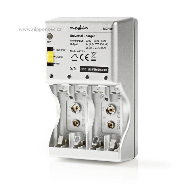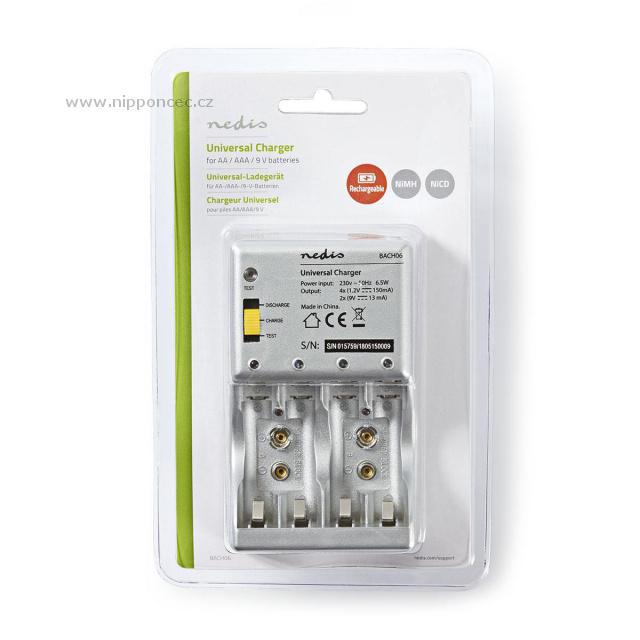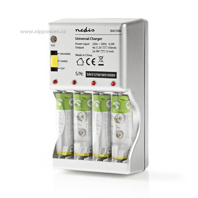 S nabíječkou baterií Nedis BACH06 budou vaše přístroje vždy připraveny. Univerzální nabíječka je vhodná pro dobíjení 1 - 4 baterií typu AAA a AA nebo pro 1-2 9 voltové baterie. Kromě dobíjení disponuje nabíječka funkcí zkoušečky a vybíjení baterií.