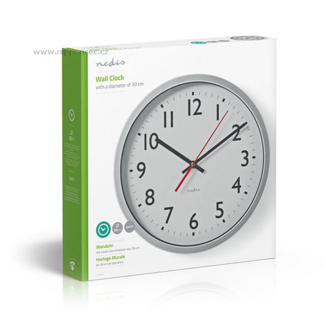 Nedis Nástěnné hodiny CLWA110WT,  stříbrná/bílá, 30 cm