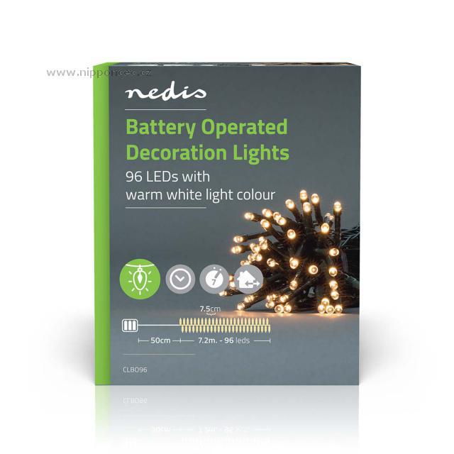 Vánoční osvětlení Nedis, 96 x LED / 7,2 m / 3 x AA