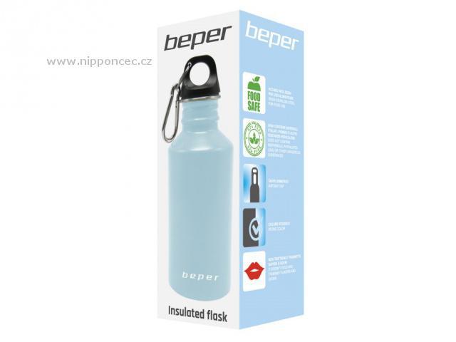 Lehká a kompaktní nerezová lahev BEPER má vzduchotěsný uzávěr s karabinou a zajistí tak bezpečnou přepravu nápoje. Lahev vám umožní dopřát si nápoj nejen doma, ale i na výletě, při sportu nebo při cestě do zaměstnání. Díky svému tvaru se snadno vejde do každého zavazadla. Pojme až 500 ml tekutiny.