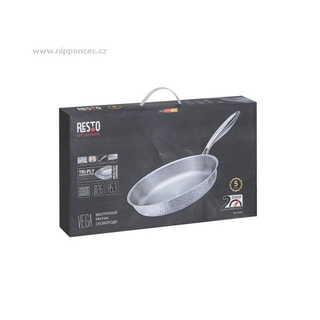 Pánev Resto 95247 s průměrem 26 cm je vyrobená z nerezové oceli a je vhodná pro všechny typy sporáků, včetně indukčních. Nerezová ocel je ideálním povrchem pro vaření, opékání, smažení a restování pokrmů, stejně jako k přípravě omáček. Plné hliníkové jádro o velkém rozměru se táhne napříč dnem a po stranách pánve pro rychlé a rovnoměrné zahřívání. Pánev je vhodná do myčky na nádobí. Bezpečné použití v troubě až do 220 °C.
