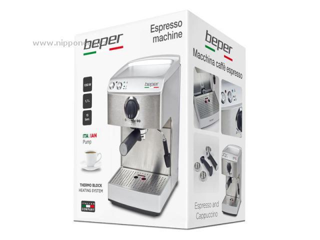 Nerezový espresso kávovar BEPER 90521 vybavený topným systémem Thermo Block a italským čerpadlem s tlakem 15 barů. Disponuje odnímatelnou odkapávací miskou pro snadné čištění. Nastavitelná parní tryska pro vynikající cappuccino.