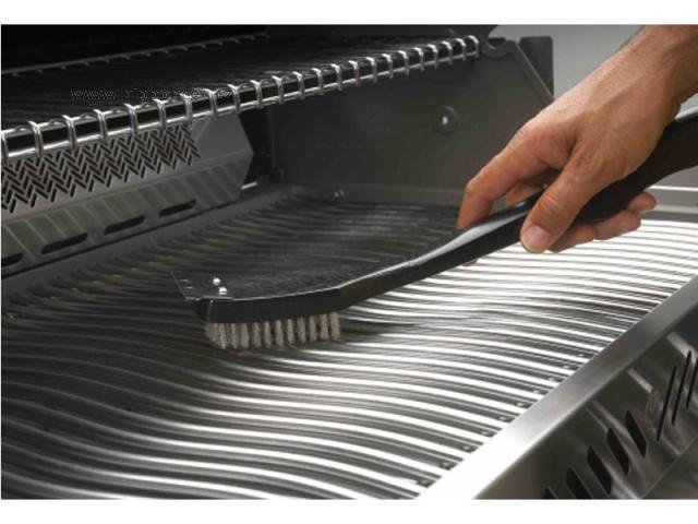 Kartáč na čištění grilu s mosaznými štětinami Napoleon je nepostradatelným pomocníkem pro čištění litinových grilovacích roštů. Kartáč je dostatečně dlouhý, takže se s ním snadno dostanete k přichyceným potravinám, a na hlavici má kovovou škrabku na obzvláště odolná místa. Ergonomicky tvarovaná rukojeť je z tvrdého dřeva a je opatřena praktickým poutkem pro zavěšení.