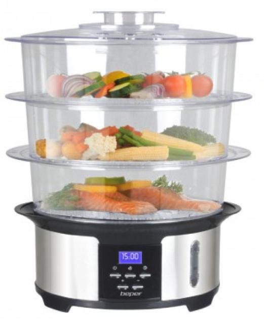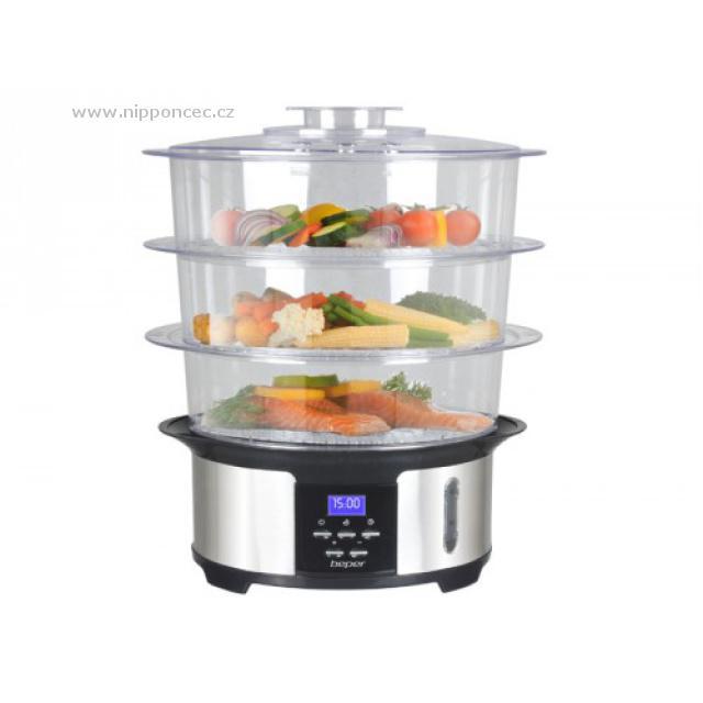 Nerezový parní hrnec BEPER 90541 s výkonem 1000 W vám připraví všechny druhy potravin v páře a bez tuku. Ušetříte čas díky možnosti přípravy několika jídel najednou. Parní hrnec je vybaven automatickým vypnutím v případě vyvaření vody, časovačem, LCD displejem a odloženým startem. Celkový objem je 12 litrů a je vhodný pro přípravu dietních pokrmů.