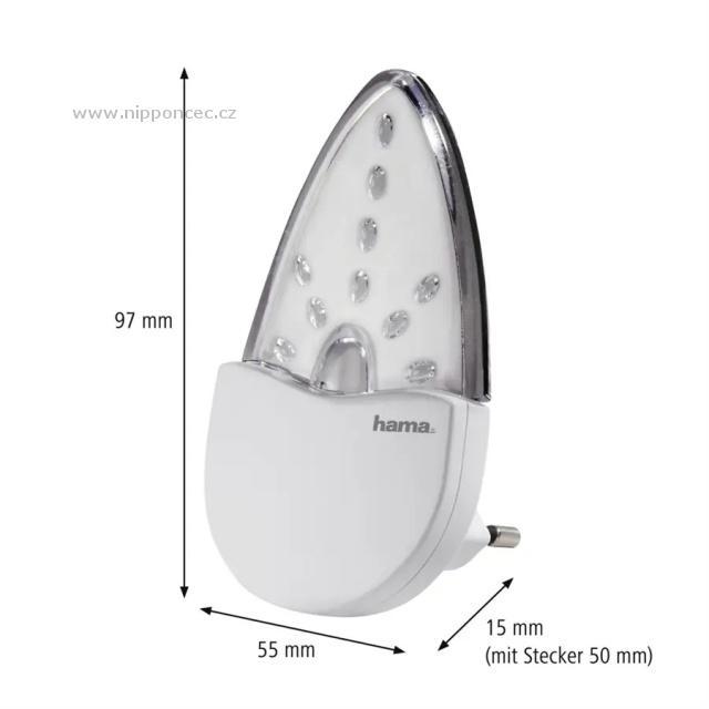 Noční světlo Hama do zásuvky, LED - úsporné a diskrétní, integrovaný senzor stmívání s AUTO zapnutím a vypnutím, vhodné i jako orientační světlo.