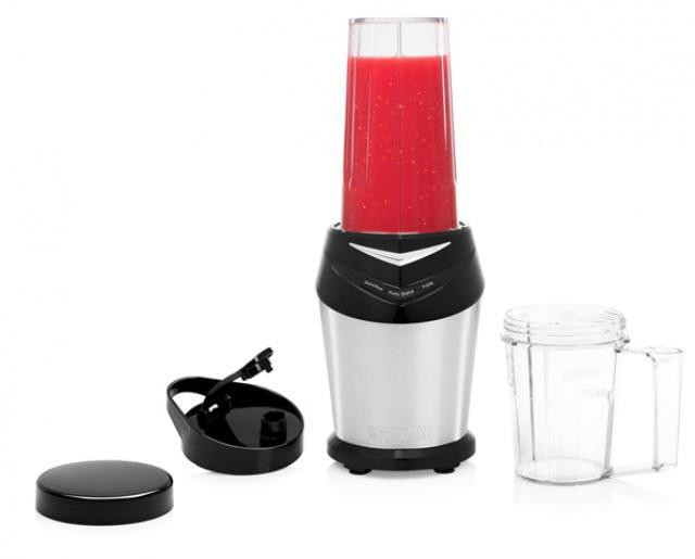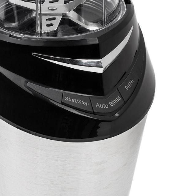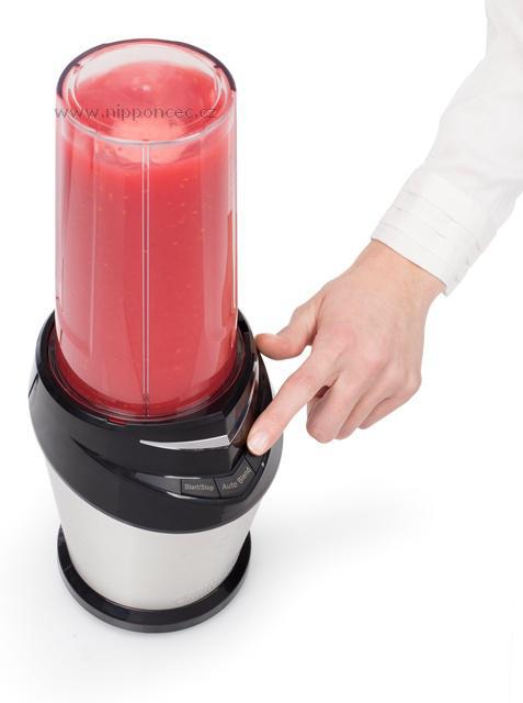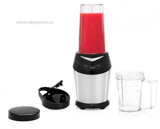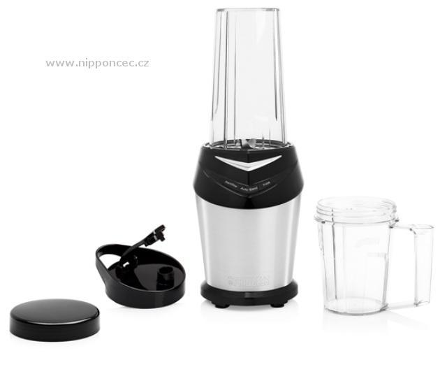 Nutriční vysokorychlostní mixér s výkonem 1000W v nerezovém provedení. Jednoduchá příprava smoothie a koktejlů díky 2 nádobám z velmi odolného plastu Tritanu, které si díky přidanému víčku s pítkem můžete vzít sebou. Nádoby o objemu: 1000 a 500 ml, nerezové ostří, které umožňuje i drcení ledu, rotace/min., 23.000 RPM, pulzní funkce, bezpečnostní přepínač, jednotlivé části omyvatelné v myčce, protiskluzové provedení pro dobrou stabilitu. Jeho výkon 1000W zaručuje rychlé mixování.