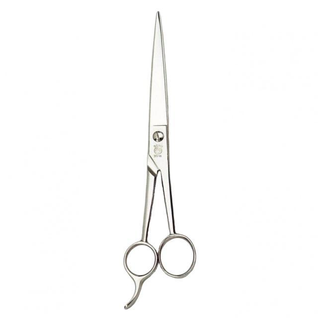 Celokovové, kované nůžky na srst psů od německé firmy DOVO Solingen s hladkým ostřím jsou vyrobené z kvalitní uhlíkové oceli. Jejich povrch je niklovaný. Disponují opěrkou prstu, tedy kovaným háčkem.