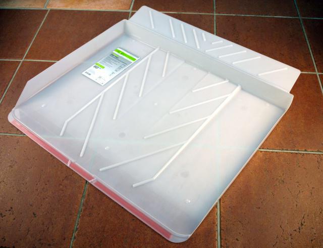 Kapající voda se hromadí v přední části misky, kde je dobře viditelná, takže si jí všimnete dřív, než nadělá větší problémy. Odkapávací podložka je určena pod volně stojící pračku, myčku, chladničku nebo mrazničku. Je účinným nástrojem pro ochranu podlahy před kapající vodou. Stejně tak je praktická např. při odmrazování. Podložka sice nemůže zadržet větší množství vody, ale dokáže poskytnout trochu času pro následné řešení. Podložka je doporučována pojišťovacími společnostmi.