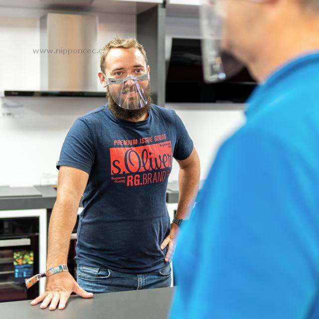 Štít nemá filtrační schopnost, pokud se pohybujete v prostředí s velkou koncentrací lidí nebo v rizikovém prostředí, doplňte je respirátorem, rouškou a dezinfekcí.