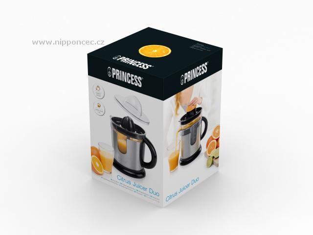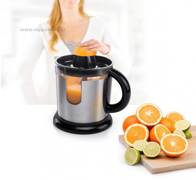 Lis na citrusy Princess v designovém provedení z nerezové oceli s výkonným motorem. Citrusovač má jednoduché automatické zapnutí (zapíná se nasazením ovoce na kužel a jemným tlakem dolů) a automatickou pravo-levo točivou rotaci pro efektivní výtěžnost množství šťávy. Součástí výbavy jsou 2 kužely na ovoce a filtr dřeně.