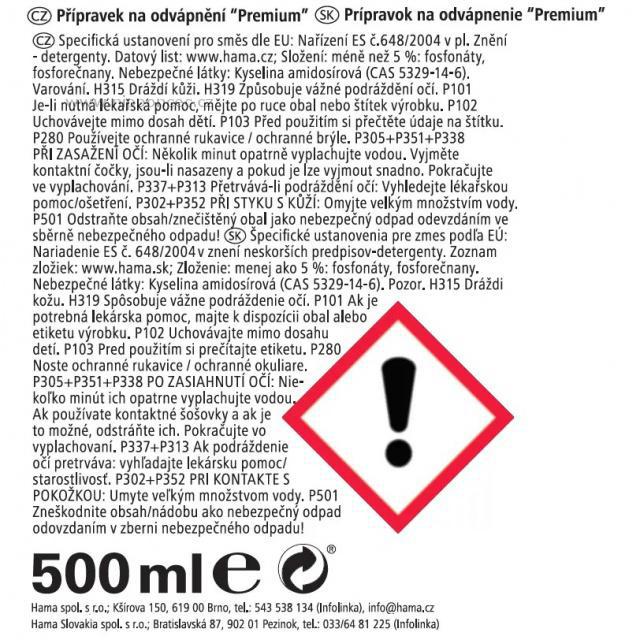 Pro kompletní odvápnění dejte do nádržky s vodou 100 ml přípravku Xavax Premium, přilijte 2 l vody a zapněte přístroj, příp. spusťte vyvařovací nebo čistící program. Po odvápnění vodní nádržku důkladně vypláchněte pod tekoucí vodou a nakonec nechte zařízením 1 až 2krát proběhnout čistou vodu ze zásobníku. Vždy prosím dodržujte pokyny výrobce daného přístroje.