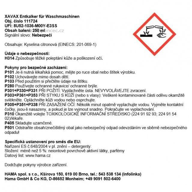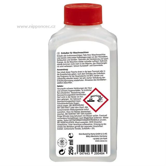 Xavax odvápňovací přípravek na odstranění vodního kamene ze všech důležitých částí pračky. Rozpouští usazeniny vodního kamene z topného tělesa, hadic a ventilů. Pravidelným použitím přípravku na odvápnění snižujete riziko poškození pračky.
