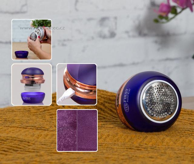 Elegantní odstraňovač žmolků First Austria šetrně a rovnoměrně zbaví tkaniny žmolků a uzlíků. Jednoduchá obsluha - provoz na nabíjecí DC baterie, napájené přes USB. Odžmolkovač je vybaven 3 čepelemi o průměru 4,5 cm, odnímatelným zásobníkem na žmolky a ergonomickou rukojetí.