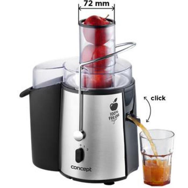 K největím přednostem odavňovače patří jeho univerzálnost, extra velký plnicí otvor a bezpečný provoz. Přístroj má protiskluzové noičky a zapne se a po zajitění víka nerezovou sponou. První rychlostní stupeň je určen pro měkké druhy ovoce a zeleniny, druhý naopak pro ty tvrdí.