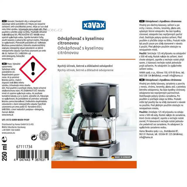 Pravidelné odvápňování vašich spotřebičů je nezbytné pro zachování jejich bezproblémového fungování. Odvápňovač Xavax je vhodný pro šetrné odvápnění zařízení na přípravu čaje, kávy, pressa, pro kapslové kávovary, i plně automatické kávovary, vařiče vajíček, rychlovarné konvice, ponorné vařiče, hrnce, nerezové hrnce a pánve, dřezy, povrchy z nerezové oceli, chromu, keramiky a plastu atd.