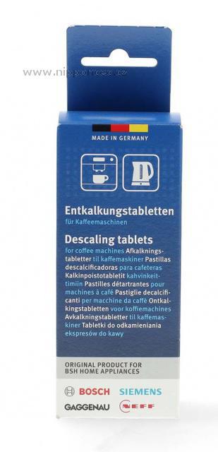 Dopřejte vašemu kávovaru pravidelnou péči. Odmění se vám delší životností a výbornou kávou každý den. Odvápňovací tablety Bosch odstraňují vodní kámen rychle a spolehlivě. Hodí se i na čištění varných konvic. Balení obsahuje 6 tablet po 18 g, které vám v závislosti na aplikaci vystačí na 3-6 odvápňovacích cyklů.