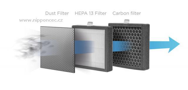 3násobná filtrace: Součástí modelu OV1200 je i čistička vzduchu vybavená trojnásobným filtračním systémem, který zachytí škodlivé látky obsažené ve vzduchu a zamezí jejich dalšímu šíření. Každá jednotlivá filtrační vrstva zadrží specifické druhy nečistot a vzájemnou součinností pohltí až 99 % škodlivin obsažených ve vzduchu a přispějí k čistšímu ovzduší ve vaší domácnosti.