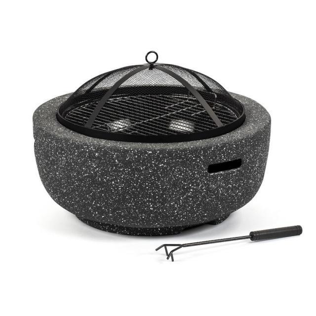 Toto ohniště FIELDMANN dokonale doplní každou zahradu, terasu nebo plácek pro kempování. Jeho kompaktní rozměry a váha 11 kg usnadňují přepravu, útulný oheň si tak užijete, ať jste kdekoli. Díky grilovacímu roštu o průměru 43 cm je vhodný i pro přípravu steaků, ryb nebo zeleniny. Tělo ohniště je vyrobeno z elegantního páleného kamene. Dobře vypadá, ale především chrání trávu a podlahu pod ohništěm od spálení. Pro bezpečnější používání je ohniště navíc vybaveno síťovým poklopem, který zachytí drobné uhlíky. Tím se snižuje riziko propálení oblečení nebo dokonce vzniku požáru.