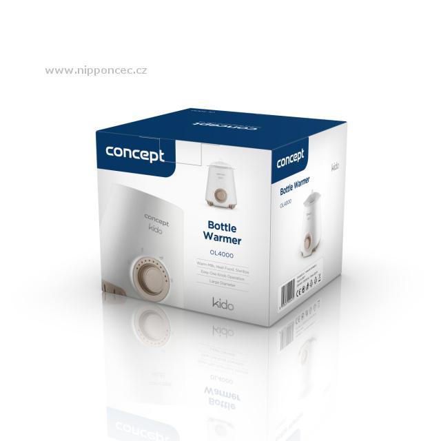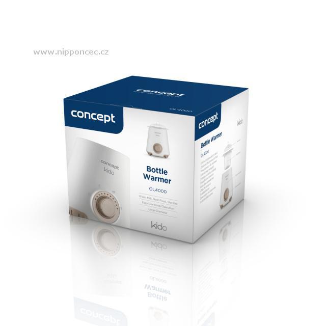 Ohřívač lahví 3v1 single Concept OL4000 KIDO dokáže rychle a rovnoměrně ohřívat, rozmrazovat i sterilizovat. Je vybavený nádobou s víčkem o objemu 180 ml. Kromě nádoby o objemu 180 ml, která je součástí balení, pojme ohřívač také většinu běžných kojeneckých lahviček. Nabízí 3 stupně ohřevu a funkci udržování teploty. Díky kompaktní velikosti je možné používat ohřívač i na cestách. Udrží ideální teplotu k okamžité konzumaci. Ohřívač lahví 3v1 single Concept OL4000 KIDO dokáže rychle a rovnoměrně ohřívat, rozmrazovat i sterilizovat.