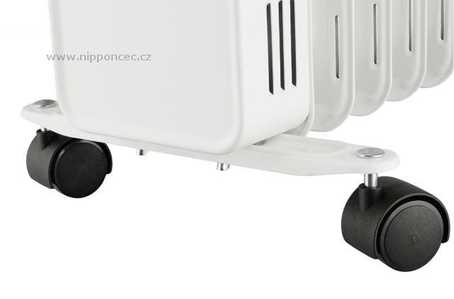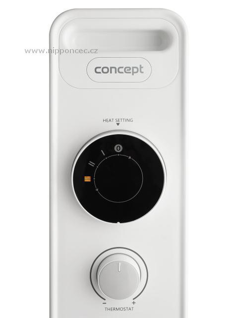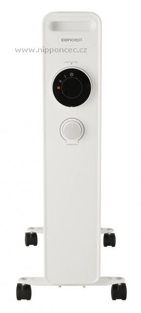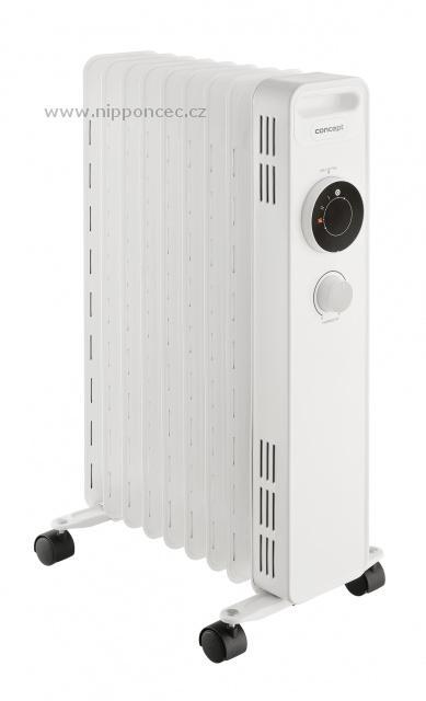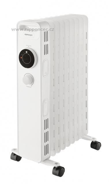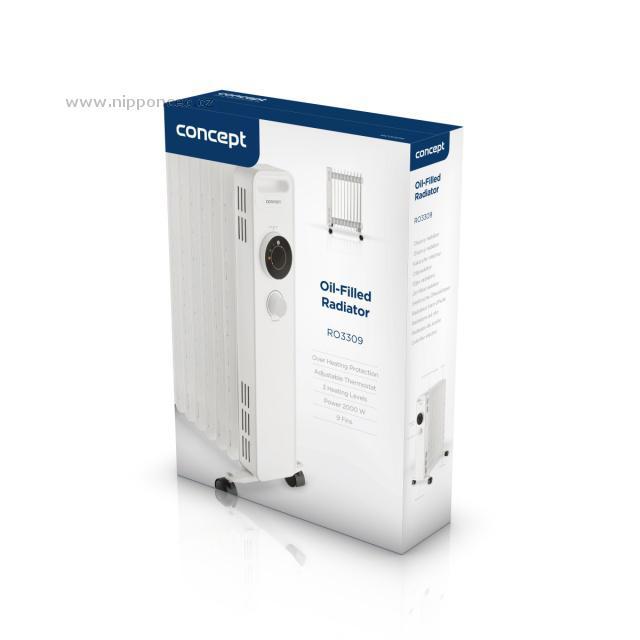 Olejový radiátor Concept RO3309 s 9 topnými články, termostatem a 3 stupni nastavení výkonu představuje doplňkový a praktický zdroj tepla s tichým a efektivním provozem. Olejový radiátor se rychle a rovnoměrně zahřívá a díky naakumulovanému teplu v nahřátém oleji poskytuje teplo i po svém vypnutí. Pro maximální bezpečnost je přístroj vybaven pojistkou proti přehřátí a automatickým vypnutím při náhodném překlopení. Rukojeť a kolečka s plynulým chodem umožňují radiátor snadno přemístit po místnosti.