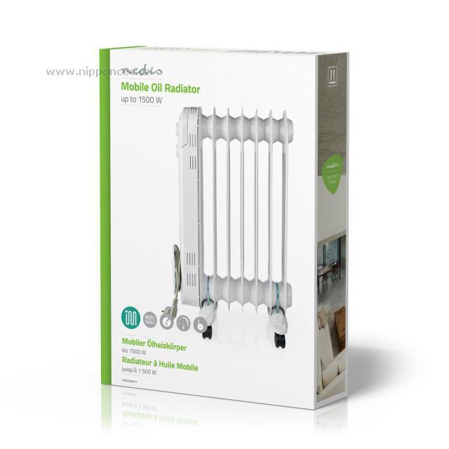 Přenosný olejový radiátor Nedis HTOI20EWT7 představuje doplňkový a praktický zdroj tepla s tichým a efektivním provozem. 7 topných žeber a tři možnosti nastavení výkonu (600, 900, 1500 W) se postarají o vyhřátí místnosti o velikosti 8 - 12 m². Součástí radiátoru je termostat s plynulou regulací k nastavení požadované teploty ve vytápěné místnosti. Pro maximální bezpečnost je přístroj vybaven pojistkou proti přehřátí a ochranou proti překlopení. Díky kolečkům s plynulým chodem a rukojeti lze radiátor snadno přemístit po místnosti.