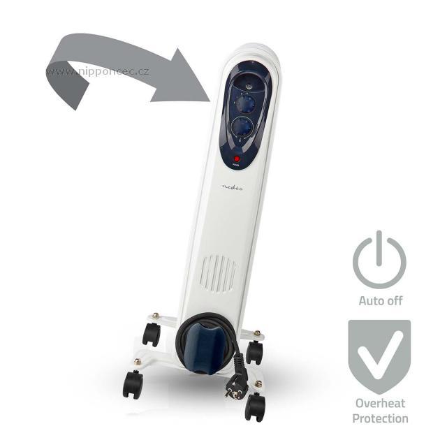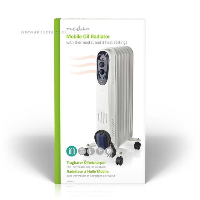 Přenosný olejový radiátor Nedis HTOI30WT7 představuje doplňkový a praktický zdroj tepla s tichým a efektivním provozem. 7 topných žeber a tři možnosti nastavení výkonu (600, 900, 1500 W) se postarají o vyhřátí místnosti o velikosti 15 m². Pro maximální bezpečnost je přístroj vybaven pojistkou proti přehřátí a ochranou proti překlopení. Díky rukojeti a kolečkům s plynulým chodem lze radiátor snadno přemístit po místnosti. Vhodný do dobře tepelně izolovaných prostor nebo ke krátkodobému používání.