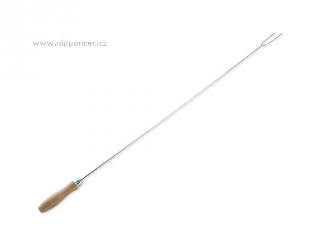 Jednoduchá pomůcka pro opékání všech možných potravin na otevřeném ohni. Délka 1 metr, s rukojetí. Vidlice s ostrými hroty usnadňuje napíchnutí potravin, uzeniny se také na vidlici neprotáčí. Nerezová ocel s dřevěnou rukojetí. Průměr vidlice 4 mm.