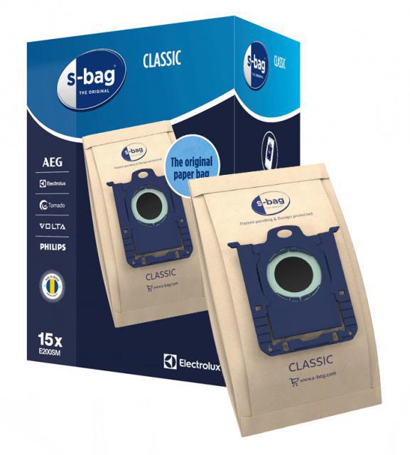 Originální sáčky Electrolux S-Bag ® Classic E200M 15ks MegaPack pro vysavače Electrolux,Philips,AEG.... S novým PLASTOVÝM držákem sáčku! Electrolux E200SM Mega Pack S-BAG Classic - originální papírové sáčky do vysavače 15ks sáčků v balení MegaPack balení, vícevrstvý filtrační papír.Electrolux E200 S-Bag Classic sáčky - 15 ks v balení