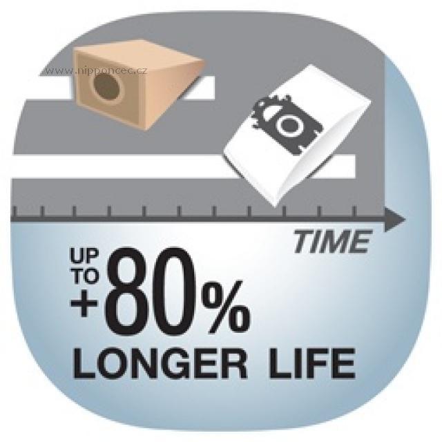 Sáčky Electrolux s-bag® Ultra Long Performance pro s-bag jsou jedinečné: - Prodloužení životnosti sáčku s garantovanou filtrací: sáčky s-bag® Ultra Long Performance vydrží o 80 % déle než tradiční papírové sáčky do vysavače a jejich optimální kapacita je 5 litrů (na rozdíl klasických sáčků S-Bag). Sáček bez ohledu na výkon vysavače vydrží mnohem delší dobu bez výměny.