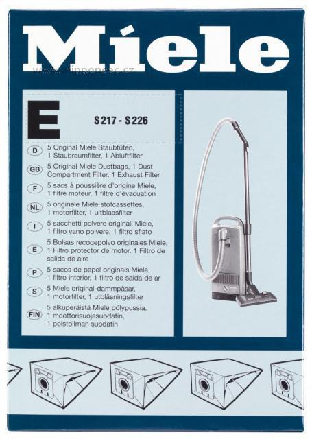 Sáčky od výrobce Miele, z vícevrstvého filtračního papíru, sáčky do vysavače Miele S 217 - S 226 typ E, 5ks Balení obsahuje 5 ks originální sáčků do vysavače MIELE, 1 ks filtru AirClean a 1 ks motorového filtru.