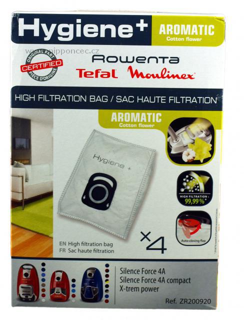 Sáček Rowenta Hygiene+ Aromatic je nový typ sáčku do vysavače z netkané textilie - mikrovlákna - s extrémně vysokým stupně filtrace 99,99 % nečistot a jemně parfémovaný. Při vysávání příjemně provoní vysávané prostory aroma bavlníkového květu. Kompatibilní pro značení ROWENTA ZR200540, ZR200520, ZR200720, ZR200740, ZR200920 a určeny pro vysavače Rowenta a Tefal, ROWENTA Compact Power 3A, ROWENTA Power XXL, ROWENTA Silence Force Compact RO63xx, ROWENTA RO49xx Green Force MAX, ROWENTA Silence Force Compact RO63xx, ROWENTA RO68xx X-Trem Power 3A, ROWENTA RO73xx Silence Force 5*, ROWENTA RO74xx Silence Force Allergy, ROWENTA X-Plorer S65+, ROWENTA X-Plorer S70+, ROWENTA X-Plorer S75S+, ROWENTA X-Plorer S220+, X-Plorer S240+.