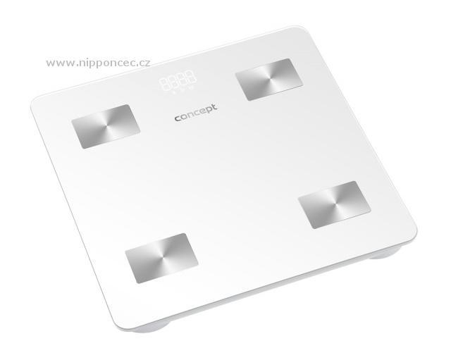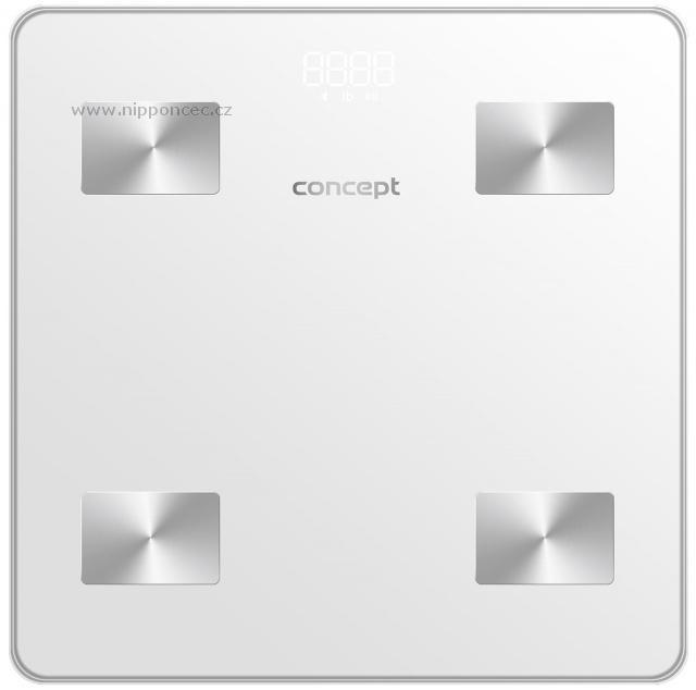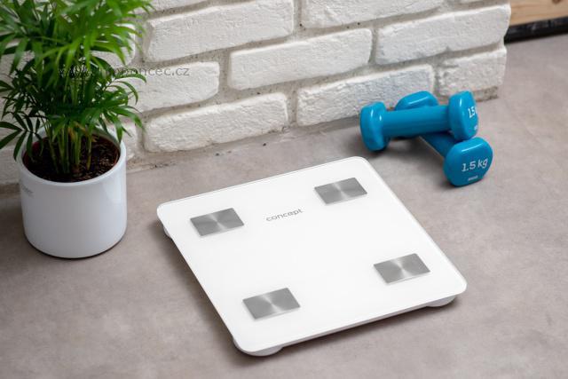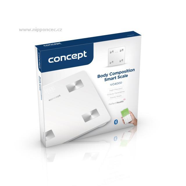 Digitální osobní váha Concept VO4000 Perfect Health v bílém provedení dokáže změřit 13 tělesných parametrů a tím provést kompletní analýzu těla.