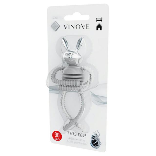 VINOVE TVISTER je řada osvěžovačů vzduchu do auta i pro domácnost ve formě rozpustilého panáčka. Flexibilní končetiny umožňují panáčka přichytit na nespočet míst, jako např. ramínko, lampičku, nebo ventilační mřížku u auta. Příjemná vůně citrusů, bylinek a dřevitých tónů se pozvolna uvolňuje po dobu 90 dní.