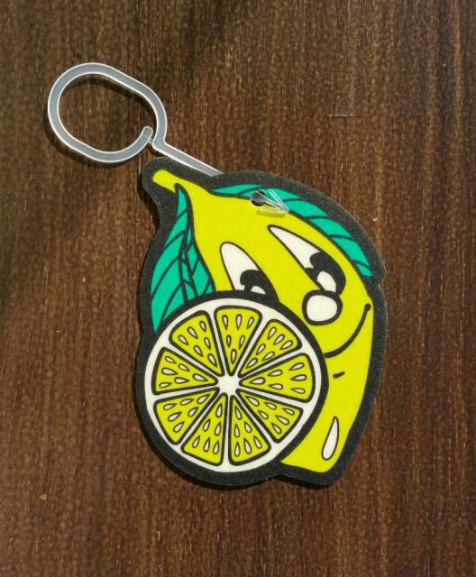 Osvěžovač vzduchu - klasické provedení, s očkem na zavěšení - provoní váš byt, kancelář, automobil, a další prostory příjemnou jemnou vůní citronu. S veselým obrázkovým motivem.
