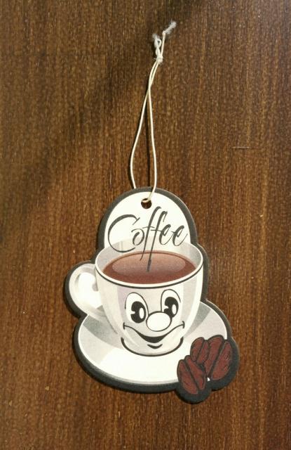 Osvěžovač vzduchu - klasické provedení, s očkem na zavěšení - provoní váš byt, kancelář, automobil, a další prostory příjemnou jemnou vůní kávy. S veselým obrázkovým motivem.