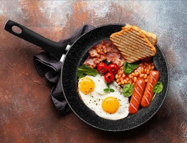 Hliníková pánev KLUGE Smile o průměru 24 cm je opatřena kvalitním nepřilnavým povrchem s minerálním základem. Pánev je vhodná pro všechny typy sporáků, včetně indukčních. Sendvičové dno rovnoměrně rozvádí teplotu po celé ploše. Rukojeť typu soft touch se nenahřívá a je velmi příjemná na dotek.