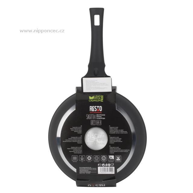 Pánev RESTO 93323 je vyrobena z kovaného hliníku, který zajišťuje rovnoměrné rozložení tepla a je odolný proti korozi. Uvnitř je 4vrstvý nepřilnavý povrch Pfluon, který umožňuje vaření bez připalování i s minimálním množstvím tuku. Je tak maximálně hygienický a vhodný pro zdravé vaření. Tento povrch neobsahuje kadmium, zinek a kyselinu perftroktanovou (PFOA). Pánev je vhodná pro všechny typy sporáků, včetně indukčních. Speciálně navržený vnější povlak, který chrání povrch před uhlíkovými usazeninami, usnadňuje údržbu a dlouhodobě udržuje původní vzhled. Disponuje ergonomicky tvarovanou rukojetí. Na rozdíl od standardních pánví má spodní část vyztuženou antideformačním diskem, který prodlužuje její životnost a při zahřátí zaručuje odolnost proti deformaci.