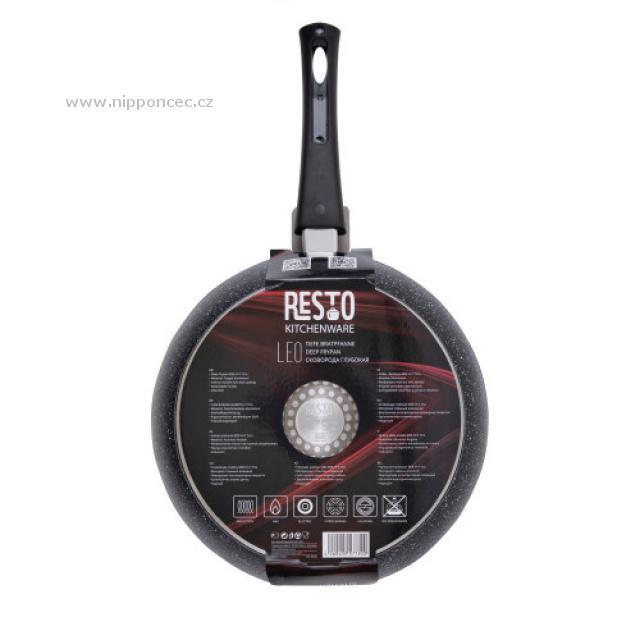 Pánev RESTO LEO v moderním provedení je vyrobena z kovaného hliníku, jenž zajišťuje rovnoměrné rozložení tepla a je odolný proti korozi. Uvnitř je 4vrstvý nepřilnavý mramorový povrch Pfluon. Tento povrch neobsahuje kadmium, olovo a kyselinu perftroktanovou (PFOA). Ergonomická odnímatelná rukojeť, která je příjemná na dotyk. Pánev je vhodná pro všechny typy sporáků, včetně indukčních. Na rozdíl od standardních pánví má spodní část vyztuženou antideformačním diskem, který prodlužuje její životnost a při zahřátí zaručuje odolnost proti deformaci. Pánev lze umístit do trouby při teplotě do 200 ℃ (bez rukojeti).