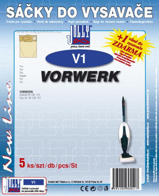 Sáčky do vysavače Jolly V1 papírové 5ks Jolly V1 to je balení 5ks náhradních sáčků pro vysavače z filtračního papíru, součástí balení je 1x vůně. Vorwerk Kobold VK 130, VK 131, VK 132 z vícevrstvého filtračního papíru. Sáčky jsou plně kompatibilní s originálními sáčky pro vysavače Vorwerk Foletto Gr.VK 130 a Gr. VK 131, VK132.