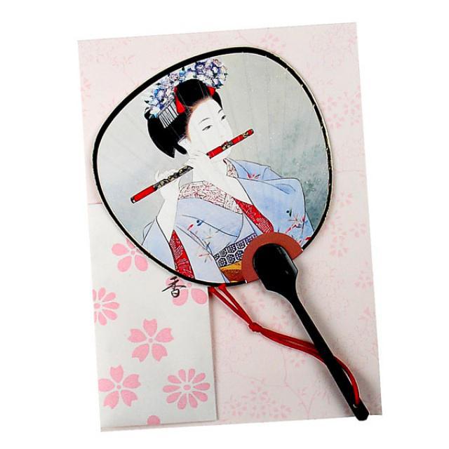 Parfémovaná japonská pohlednice Vějíř Gejša s flétnou
