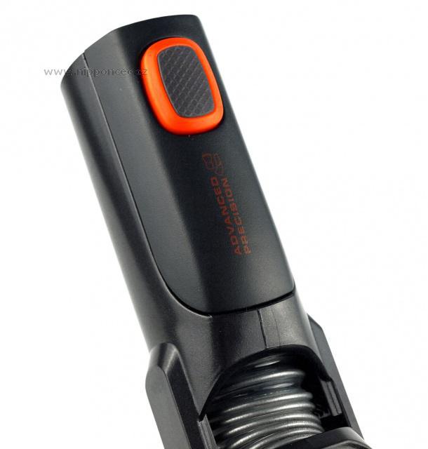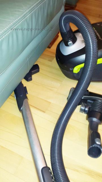 - Díky patentované technologii je možno vysávat bez ztráty sací síly i v rozích, úzkách prostorách, a pod nábytkem, kde plně přilehne k povrchu díky ohebnému kloubu.