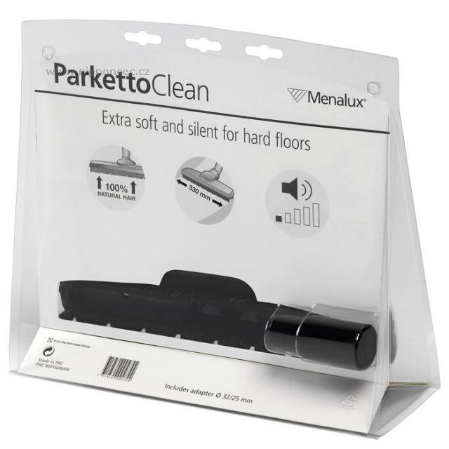 Parketová hubice s přírodními žíněmi - 32 a 35 mm - Electrolux, Concept, Rowenta, Bosch, Simenes, Panasonic, Eta, Miele. Tuto hubici na tvrdé podlahy pro vysavač Vyrábí Electrolux pod svou značkou Menalux = kvalita. Hubice Electrolux parketová je vhodná pro tvrdé podlahy - jako jsou dřevěné a plovoucí podlahy, dlažba, mramor, aj. je osazena 100% přírodním vlasem pro jemný úklid pevných povrchů a je tichá - při práci vás nebude obtěžvat nadměrným hlukem. Hubice Menalux má dobrou šíři - 330 cm - pro maximální efektivitu sání.
