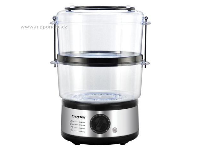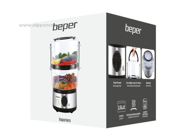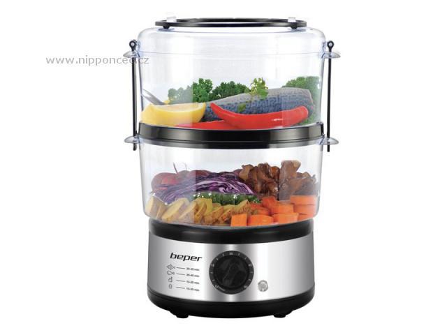 Parní hrnec s ocelovou konstrukcí Beper BC261 a výkonem 500 W je ideální pro přípravu zeleniny, masa a ryb. Parní hrnec je vybaven automatickým vypnutím v případě vyvaření vody, časovačem a odloženým startem. Celkový objem je 5 litrů a je vhodný pro přípravu dietních pokrmů. Vaření v páře udržuje nejvyšší úroveň živin. Snadné číštění. Vhodné do myčky na nádobí.