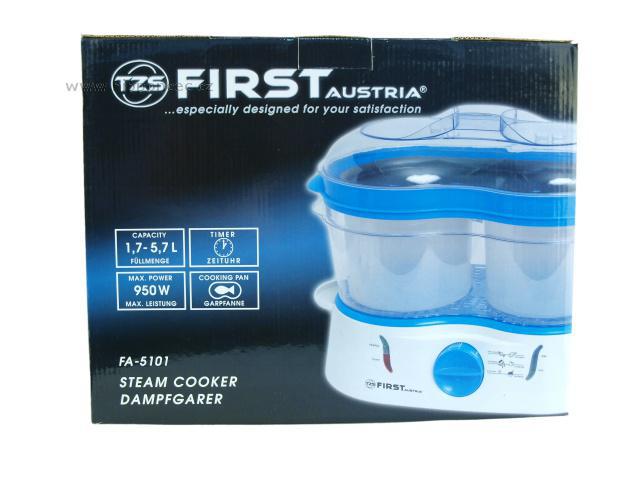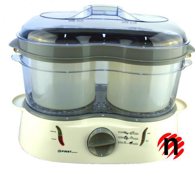 Parní hrnec od společnosti First Austria má celkový objem v rozmezí 1,7 - 5,7 l. Vhodný pro zdravou přípravu mnoha druhů potravin, například zeleniny, ryb, masa, luštěnin, bez ztráty přirozené chuti a vitaminů, využijete ho i při ohřevu. Skvělý pomocník při přípravě dietních pokrmů, kde je třeba hlídat množství tuku, i pro zdravé stravování dětí, dospělých i seniorů. Výhodou je samostatný plát s nepřilnavou plochou určený přímo pro přípravu masa a ryb. Samostatná sběrná nádoba na šťávu z připravovaných potravin. Samostatný koš pro přípravu zeleniny a rýže, nebo sypké přílohy jako např. luštěniny. Parní hrnec má časovač do 60 minut, indikátor vodní hladiny, indikátor chodu. Plně rozebíratelný - je tedy snadný na údržbu.