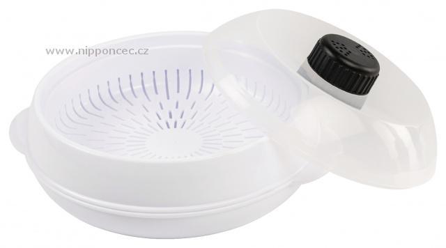 Vložte celou nádobu do mikrovlnné trouby a zapněte jí. Požadovaný čas přípravy v mikrovlnné troubě se liší dle modelu této trouby a závisí též na množství a typu připraveného pokrmu. Po vaření pomocí páry vylejte zbytek vody ze dna nádoby a jídlo je připravené k servírování.