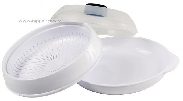 Parní nádoba, včetně víka, pro přípravu zdravých a chutných jídel pomocí páry, bez přidání tuku zanechávajíce v připravovaném pokrmu vitamíny a nutriční hodnoty. Tuto parní nádobu lze použít v chladničce/mrazničce a lze mýt v myčce nádobí. Tato souprava a parní peční vám umožní připravit chutná a výživná jídla, bez přidání tuků, nebo oleje. Průměr nádoby na vodu činí 170 mm a průměr napařovačího síta 180 mm.