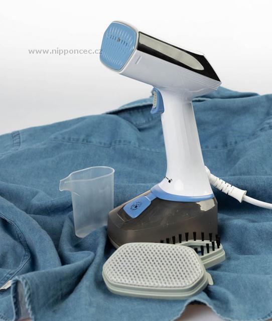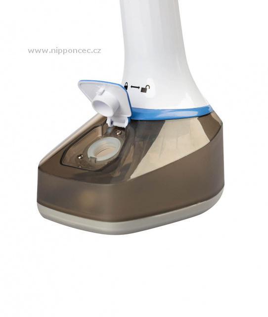 Napařovač oděvů - zajímavá alternativa klasické žehličky, vhodný i na cestování, nebo pro úpravu jemných tkanin, záclon, závěsů, oděvů na ramínku.Stlačením tlačítka se trvalým výstupem páry odstraní nejen záhyby na látce, ale i bakterie a roztoči. . Plnění vodou je snadné - nádobka na vodu je odnímatelná. Součástí balení je kartáčový nástavec a nástavec na odstranění žmolků na tkanině. Příkon 1400W a keramická napařovací plocha.