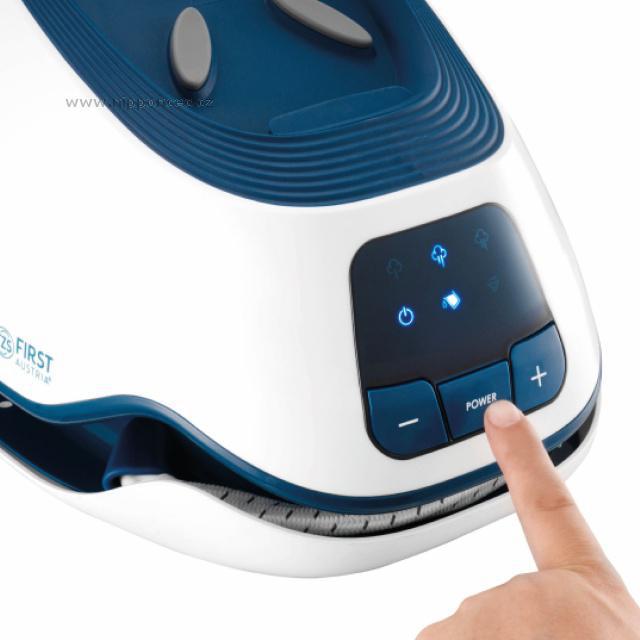 Výkonná parní stanice First Austria FA-5646-2 pro pohodlné žehlení velkého množství prádla je vybavena nádržkou na vodu o objemu 1,5 l, tlakem 8 bar, třemi stupni intenzity páry a možností volby suchého žehlení. Přehledný displej umožňuje snadné ovládání.