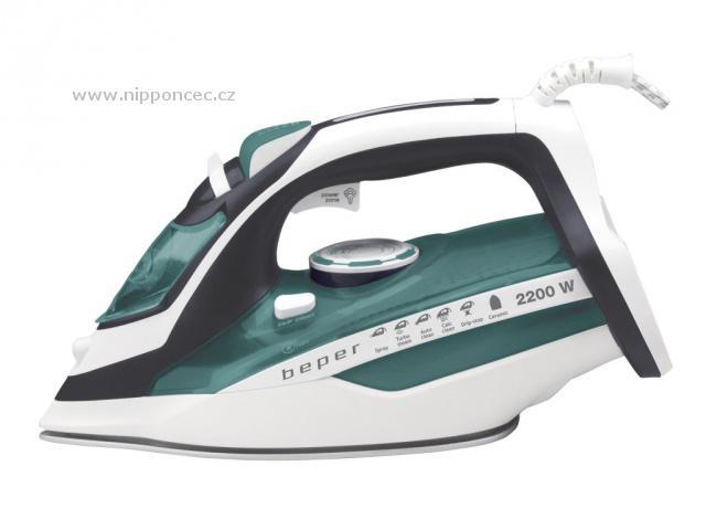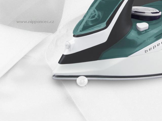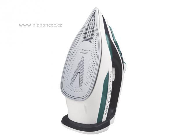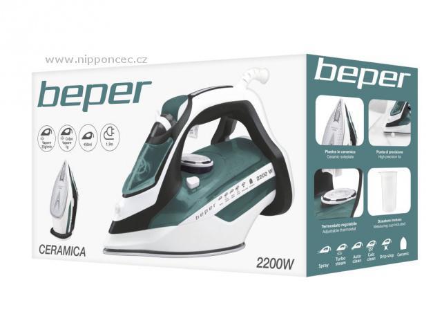 Žehlička BEPER 50101 s keramickou žehlicí plochou pro suché nebo parní použití je vybavena plynulým řízením přívodu páry a možností vertikálního žehlení. Tím se stává ideální i pro žehlení záclon, obleků, šatů a jemných tkanin párou přímo na věšáku. Žehlička má objem nádrže 450 ml a keramickou žehlící plochu. Nastavení teploty podle druhu látky je samozřejmostí. Je vybavena rozprašovačem, samočistící funkcí proti usazování vodního kamene a odkapávání. Průtok páry má 25 g/min a parní ráz 1 g.
